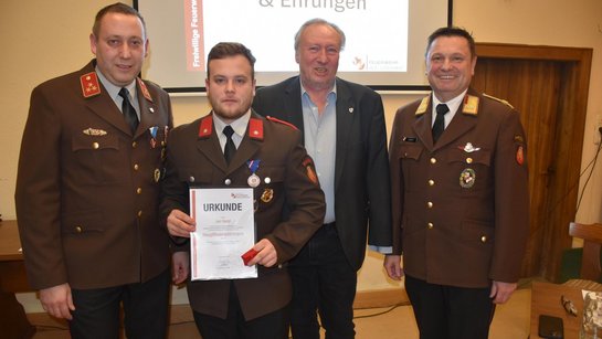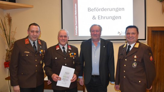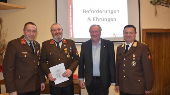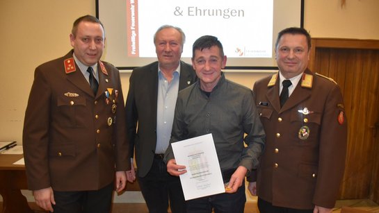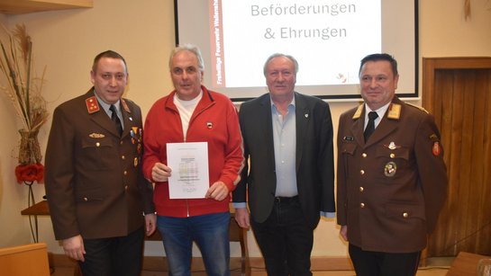 Vizebürgermeister Ing. Fritz Wadler fand in seiner Dankesrede sehr anerkennende Worte und betonte, dass ohne die freiwilligen Helfer das Feuerwehrsystem nicht aufrecht zu erhalten wäre und dankte den Mitgliedern für ihren freiwilligen und unentgeltlichen Einsatz. Bezirks-Feuerwehrkommandant Stv. Hermann Jobst bedankte sich für die gute Zusammenarbeit und berichtete auch kurz über „AKTUELLES“ auf Landes- und Bezirksebene.