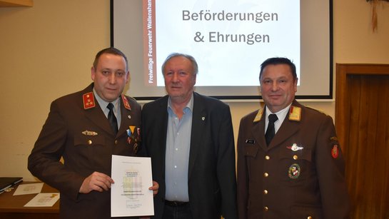 Auch Ehren-Landesfeuerwehrrat Alfred Deschberger folgte der Einladung und nahm an der Vollversammlung teil. Kommandant Manuel Meier nutzte die Gelegenheit, um sich bei Alfred Deschberger für die langjährige und erfolgreiche Zusammenarbeit zu bedanken. Alfred Deschberger seinerseits bedankte sich ebenfalls bei der FF Wallensham für die angenehme gemeinsame Zeit und die wertvolle Zusammenarbeit.