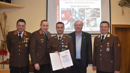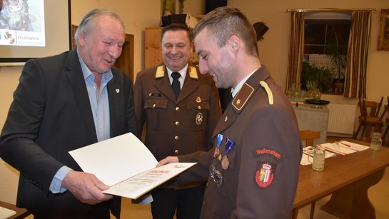 Diese erhielten für besondere Verdienste im Feuerwehrwesen in Stufe II (Silber) Johann Holzapfel und in Stufe III (Bronze) Bernhard Glas.