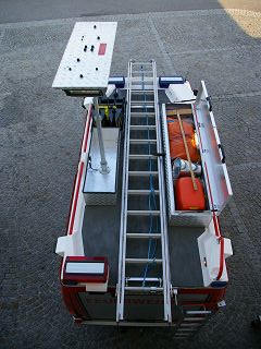 Auf dem Dach des KLF-A befindet sich der ausfahrbare Lichtmast, 2 SchlauchbrĂŒcken, 2-teilige Schiebeleiter und in der Alubox 2 SĂ€cke Ălbindemittel, Auffangwanne und Besen fĂŒr diverse Technische EinsĂ€tze.