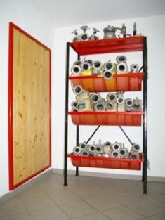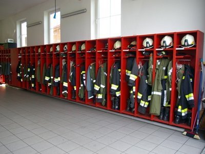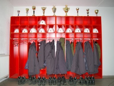 Die Garage dient nicht nur als Unterstand für unser Fahrzeug, sondern hier befinden sind auch die persönlichen Schutzausrüstungen der Mannschaft. Auch eine kleine Werkstatt für den Gerätewart und eine Waschecke für schmutzige Stiefel und Einsatzbekleidung sind hier untergebracht. Gleich neben der Werkstatt befindet sich noch die Sirenensteuerung. Die Umkleide befindet sich auch in der Fahrzeughalle und bietet Platz für 26 aktive Feuerwehrmitglieder.