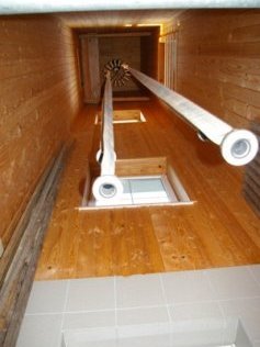 Vom Keller bis unter das Dach erstreckt sich der Schlauchturm. Nach jedem Einsatz werden die verschmutzten Schläuche gewaschen und zum Trocknen aufgehängt. Nach ein paar Tagen werden sie wieder abgenommen und ins Schlauchlager gebracht. Der Schlauchturm ist mit einem Aufzug ausgerüstet, der es erlaubt an einem Hacken die nassen Schläuche hochzuziehen.